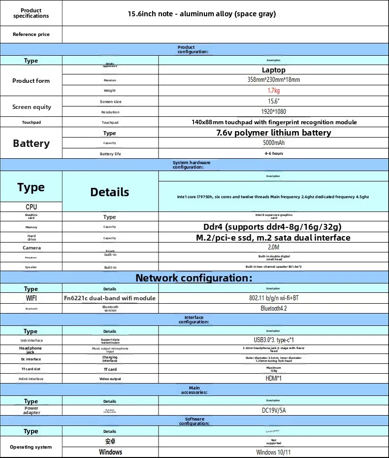 15,6 pulgadas i7/i9-10980 juego oficina negocios ligero y delgado portátil de alta definición portátil WS07