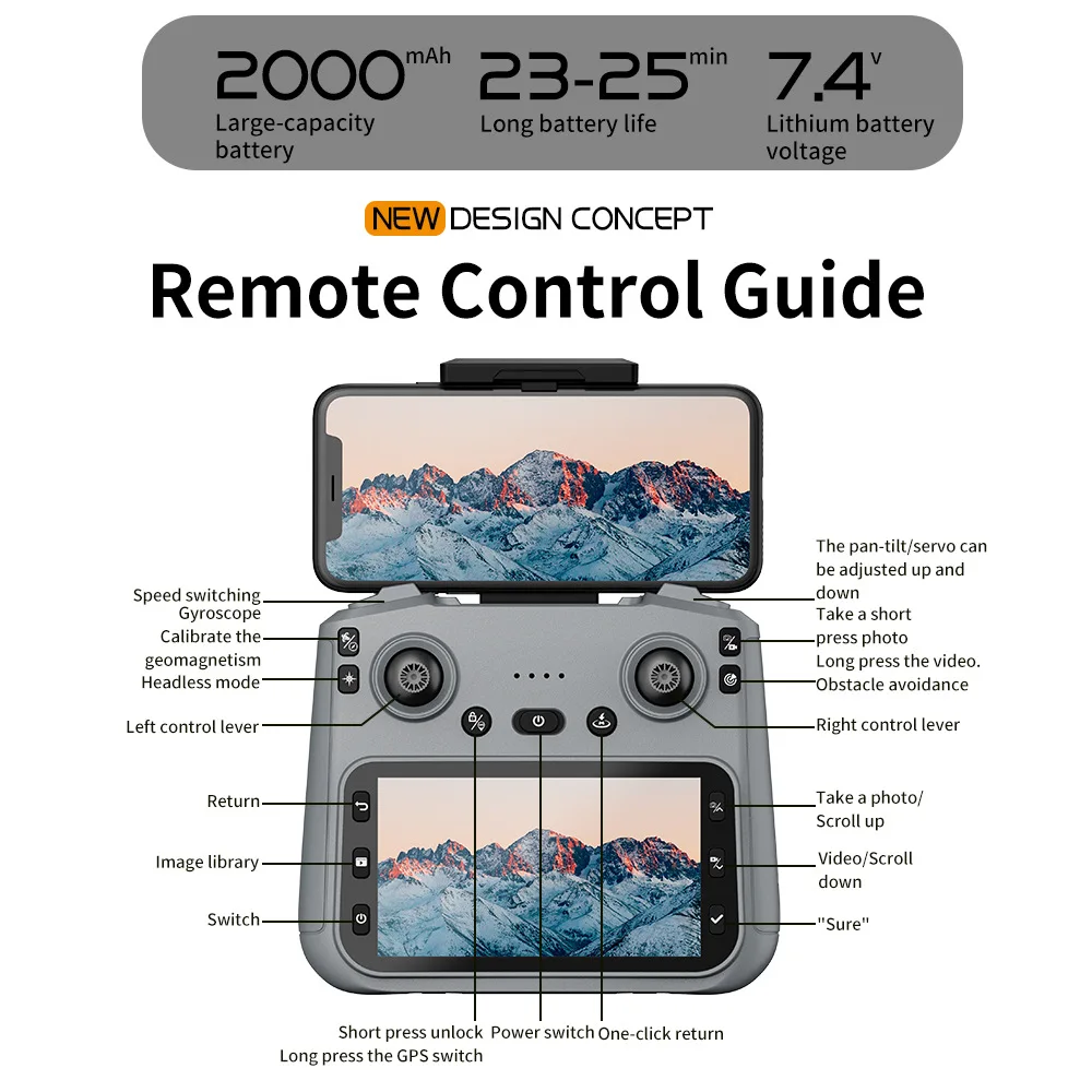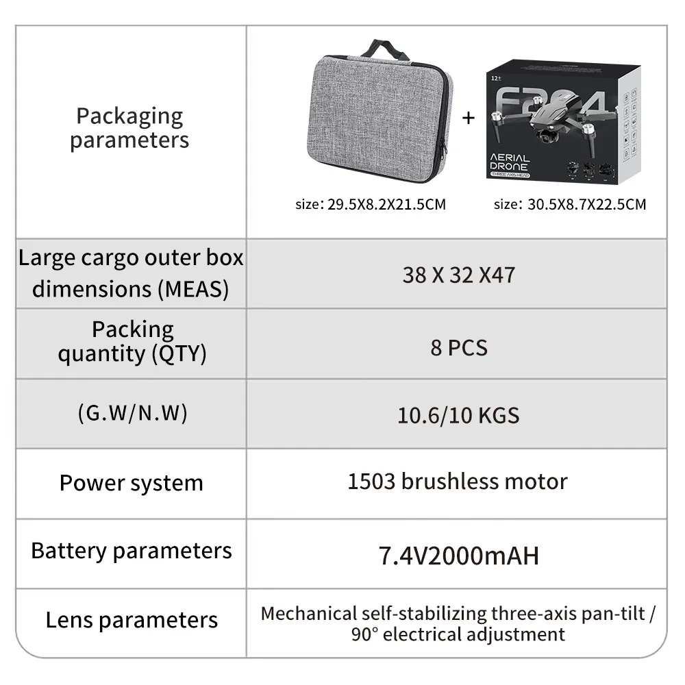 • Product parameters: Three-axis self-stabilizing gimbal GPS return, remote control with scr