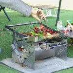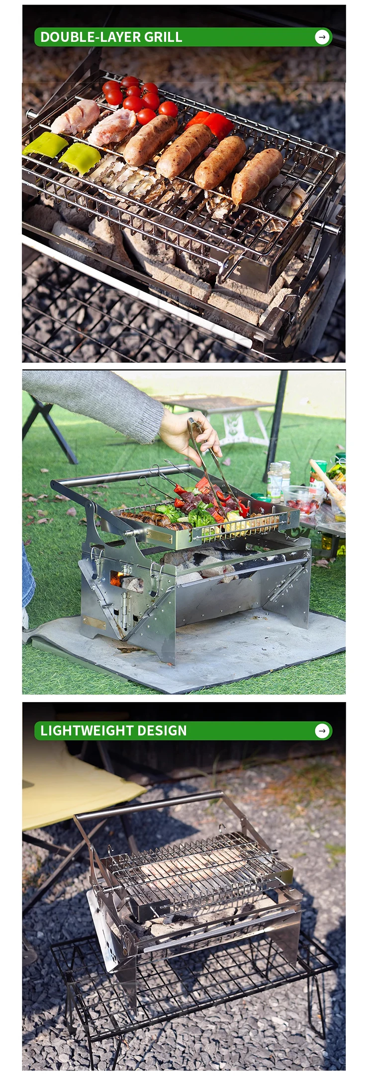 Parrilla abatible para barbacoa, parrilla giratoria para acampar, la parrilla superior para barbacoa podría girar 360° A través del mango Parrilla de acero inoxidable de carbón plegable
