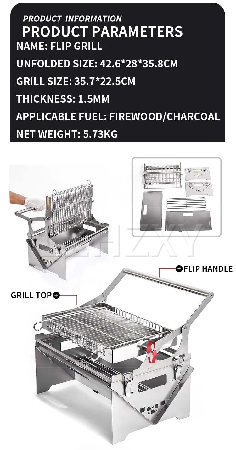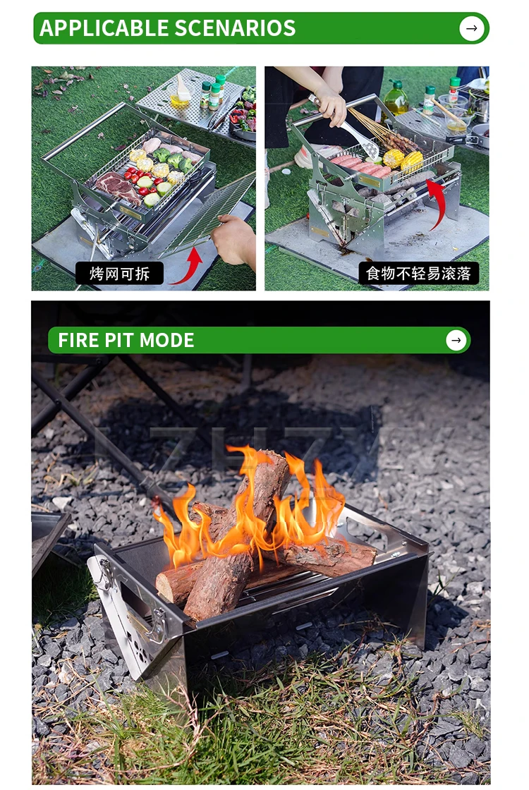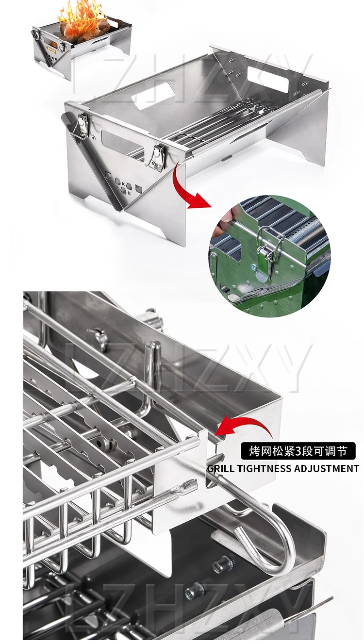 Parrilla abatible Parrilla para barbacoa Parabrisas para acampar La rejilla superior para barbacoa podría pasar 360 ° A través de la manija Parrilla de acero inoxidable al carbón para