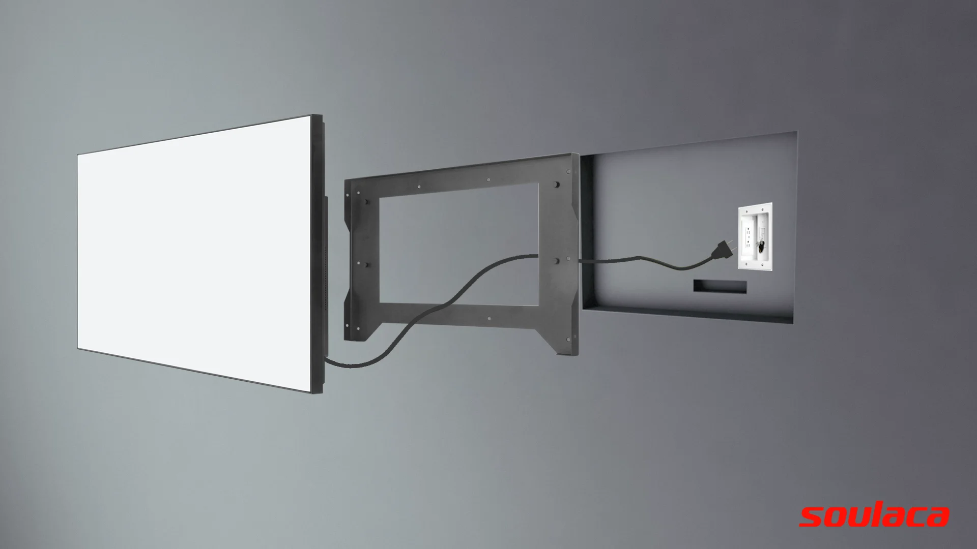 Para los modelos diseñados para instalarse y empotrarse en su pared.Por lo tanto, requiere cortar una cavidad en la pared, siendo el tamaño de la cavidad dependiendo del tamaño de la televisión que usted compra.Se recomienda que los cables de alimentación y entrada estén disponibles adyacentes a la abertura de la cavidad dentro de la cavidad.Esto le brindará una instalación de apariencia perfecta.
