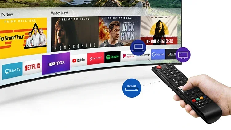 El televisor SSTV UHD se vuelve aún más inteligente con un control remoto.Colocan todo el contenido que desee al alcance de su mano, desde su decodificador hasta su consola de juegos, aplicaciones y televisión en vivo.Todo lo que necesitas es uno.